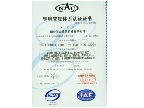 環(huán)境管理體系認證證書